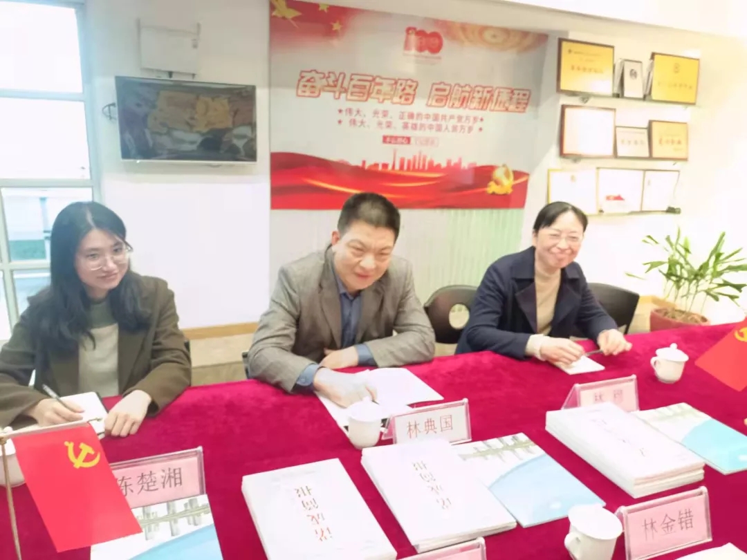 在董事長(zhǎng)唐麗芹、總經(jīng)理林金錯(cuò)的陪同下,林典國一行參觀了公司的辦公場(chǎng)所、黨員活動(dòng)室等。