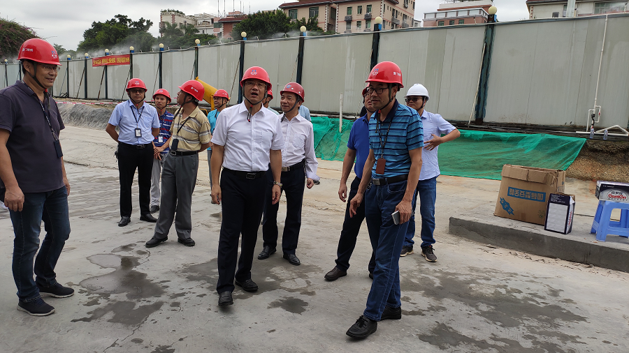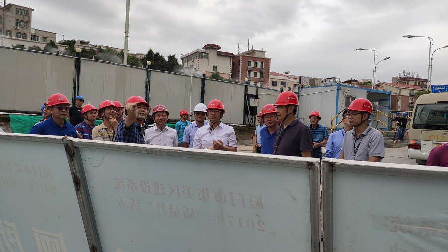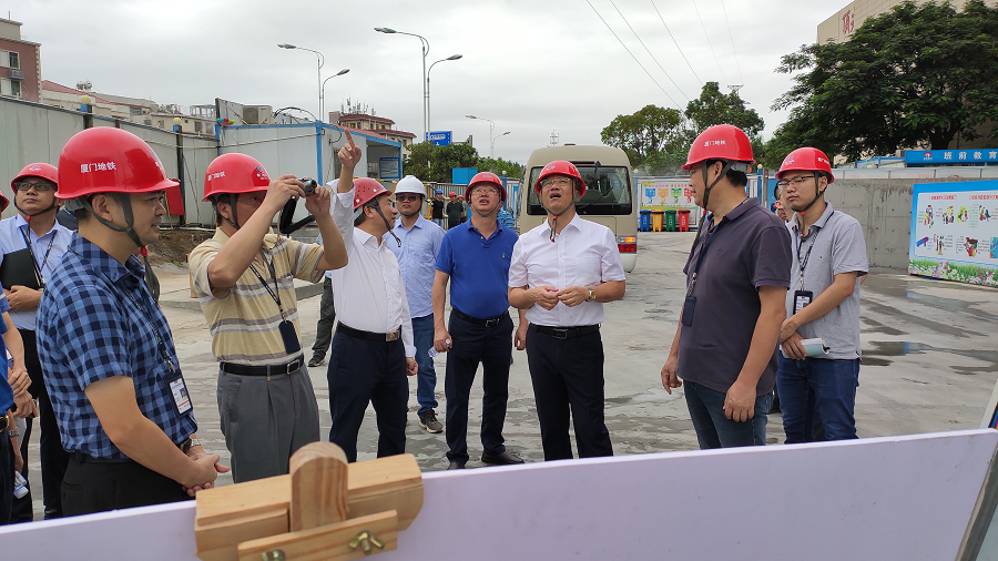 2020年9月28日上午 9時許,廈門軌道集團董事長王文格,黨委書記張建軍,集團分管領導張大成,分公司總經理陳曉堅等領導一行對我司監(jiān)理的軌道1號線火炬園站地塊配套項目施工現場調研指導。我司黨支部書記、總經理林金錯,項目總監(jiān)理工程師黃身州全程陪同調研。