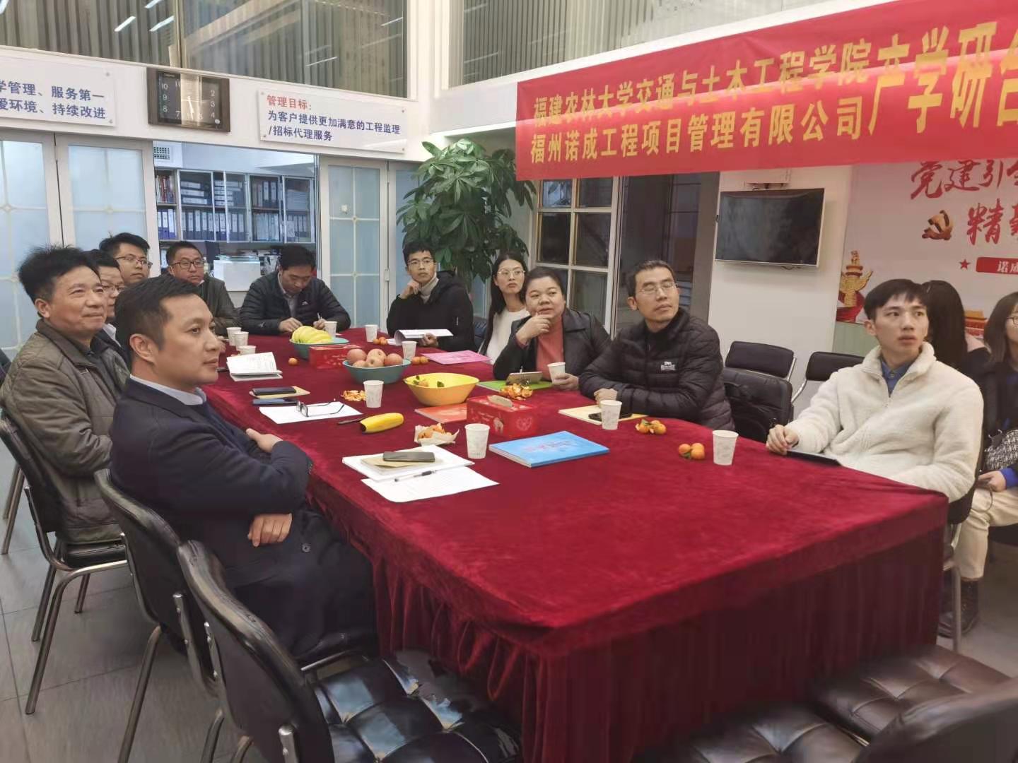 交流會上,公司黨支部書記、總經(jīng)理林金錯發(fā)表講話,他對福建農(nóng)林大學(xué)交通與土木學(xué)院一行的來訪表示衷心的感謝和熱烈的歡迎,并向師生們詳細(xì)介紹了公司發(fā)展概況及企業(yè)文化,近年來,福州諾成在不斷汲取市場經(jīng)驗,不斷升級創(chuàng)新,形成了獨具特色的“諾”文化,今后福州諾成將不斷完善人才體系,提高服務(wù)和質(zhì)量,打造“成為備受信賴,受人尊敬的工程咨詢企業(yè)”。同時他表示,公司和福建農(nóng)林大學(xué)交通與土木學(xué)院的產(chǎn)學(xué)研合作具有良好的基礎(chǔ),并正有條不紊的進行中。展望未來,雙方仍具有很大的合作空間,希望雙方今后能將此類產(chǎn)學(xué)研交流活動常態(tài)化,本著務(wù)實的態(tài)度,進一步推動雙方合作,也歡迎福建農(nóng)林大學(xué)畢業(yè)生到公司就業(yè)發(fā)展。