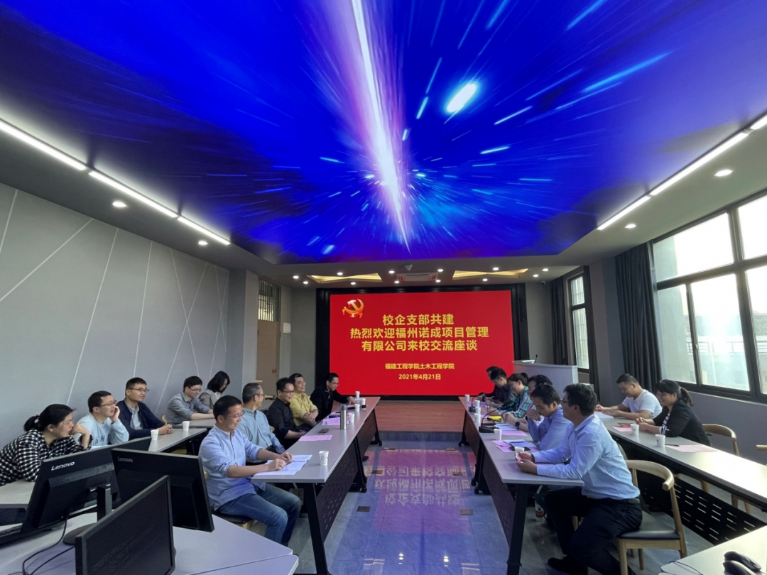 2021年4月22日下午,福州諾成工程項(xiàng)目管理有限公司黨支部書記、總經(jīng)理林金錯(cuò),董事長唐麗芹率黨支部宣傳委員林志松,黨小組組長陳濤、吳閩廷、吳矜果,黨員閔潔、趙喜東等一行前往福建工程學(xué)院土木工程學(xué)院,就黨建工作、產(chǎn)學(xué)合作、人才培養(yǎng)及社會(huì)服務(wù)等方面進(jìn)行調(diào)研交流。福建工程學(xué)院土木工程學(xué)院黨委書記黃志銘、副院長陳軍浩、莊金平,原副院長黃建華教授,地下工程教研室黨支部全體黨員等參加了會(huì)議。會(huì)議由福建工程學(xué)院土木工程學(xué)院地下工程教研室黨支部書記姚志雄教授主持。