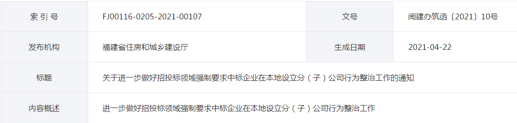 我廳于今年2月轉(zhuǎn)發(fā)《住房和城鄉(xiāng)建設(shè)部辦公廳關(guān)于開展建筑企業(yè)跨地區(qū)承攬業(yè)務(wù)要求設(shè)立分(子)公司問題治理工作的通知》(建辦市函〔2021〕36號),部署開展建筑企業(yè)跨地區(qū)承攬業(yè)務(wù)要求設(shè)立分(子)公司問題整治工作。現(xiàn)根據(jù)《福建省發(fā)展和改革委員會關(guān)于整治招投標(biāo)領(lǐng)域強(qiáng)制要求中標(biāo)企業(yè)在本地設(shè)立分(子)公司行為的函》(閩發(fā)改法規(guī)函[2021]144號)的要求,就進(jìn)一步做好整治工作有關(guān)事項(xiàng)通知如下: