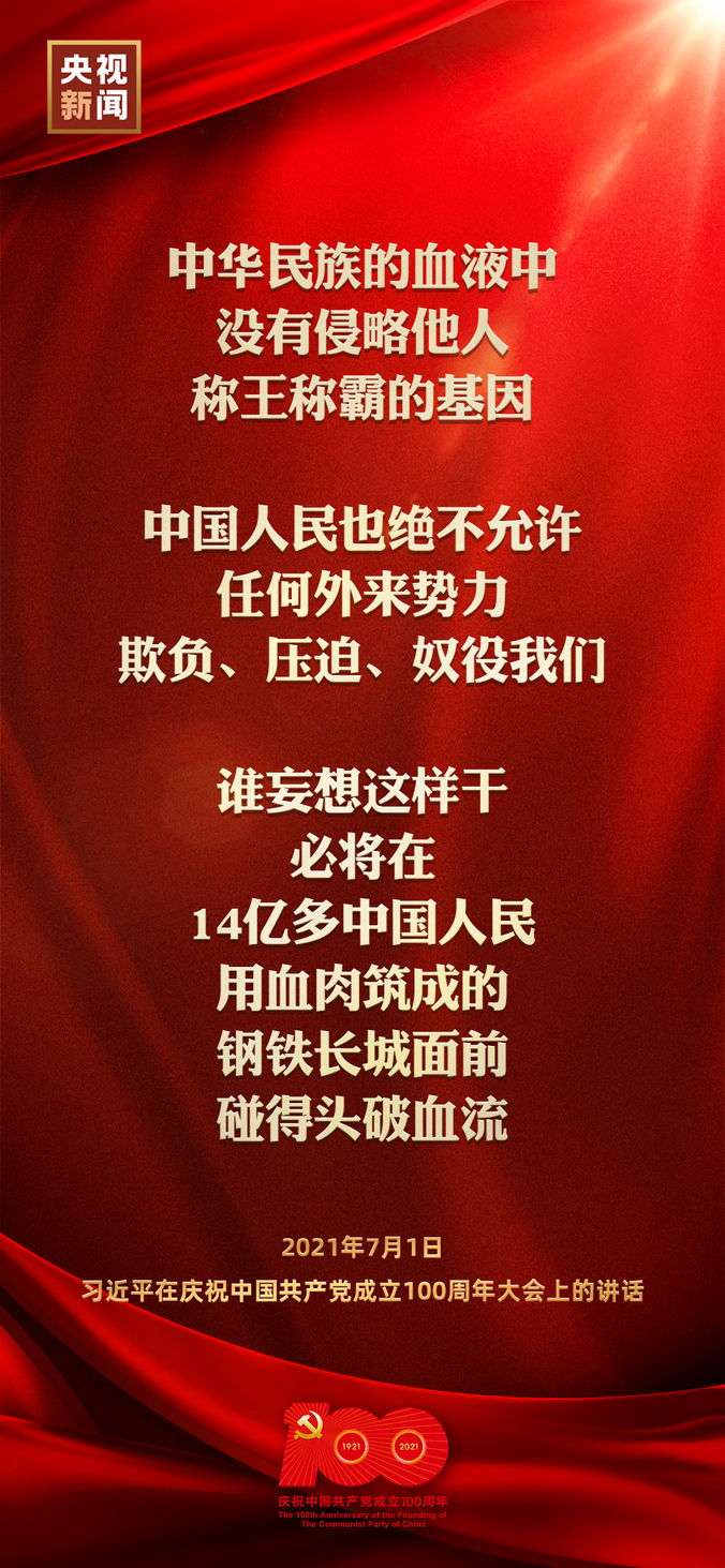 今天,慶祝中國共產黨成立100周年大會在北京天安門廣場隆重舉行,中共中央總書記、國家主席、中央軍委主席習近平發(fā)表重要講話。