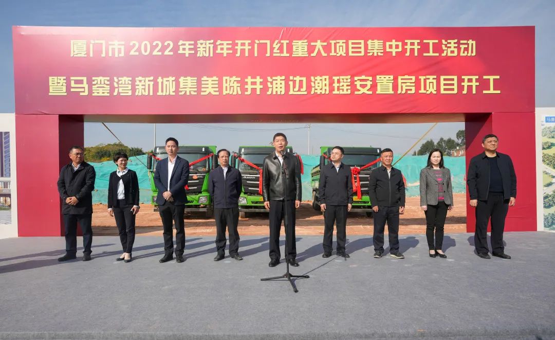 陽光和煦,海天一色。2022年1月4日上午,廈門市2022年新年“開門紅”重大項目集中開工活動在馬鑾灣新城分會場舉行,由我司監(jiān)理的馬鑾灣新城集美陳井浦邊潮瑤安置房項目舉行了開工儀式,廈門市政府副市長、市公安局局長陳育煌出席并宣布項目開工,集美區(qū)區(qū)長胡旭彬致辭。這是馬鑾灣新城今年首個開工的安置房項目,該工程預(yù)計于2024年12月建成。