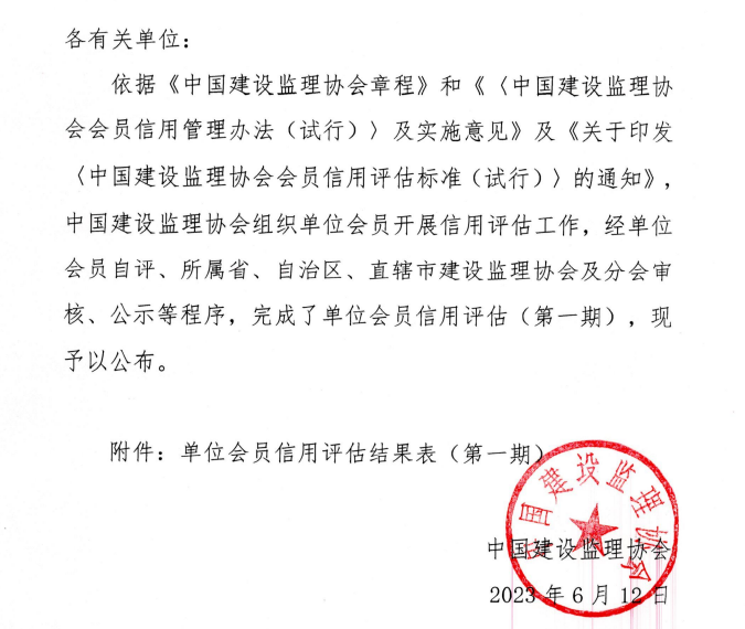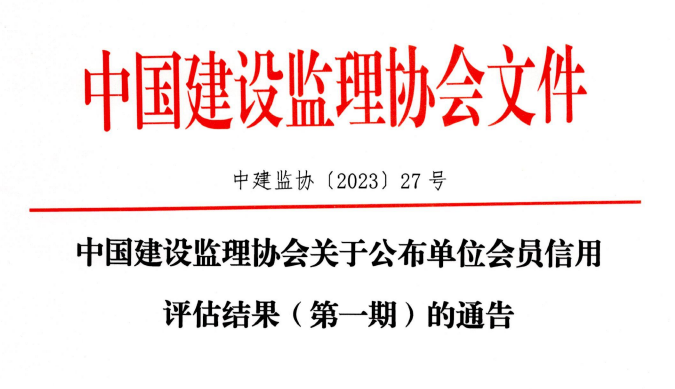 喜訊,我司榮獲中國建設監(jiān)理協(xié)會單位會員信用評估AAA級。