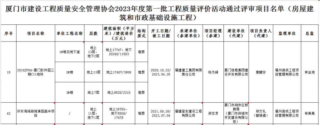 廈門市建設(shè)工程質(zhì)量安全管理協(xié)會關(guān)于公布2023年度第一批工程質(zhì)量評價(jià)活動通過評審項(xiàng)目的通知